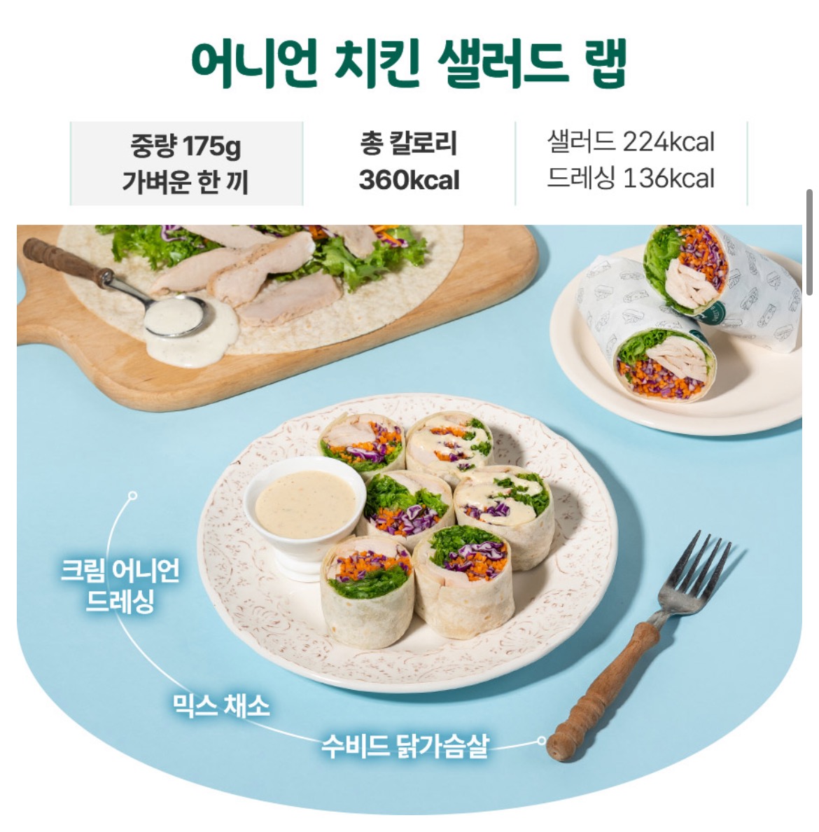 | 어니언 치킨 샐러드 랩 | 175g | 360kcal | 136kcal |