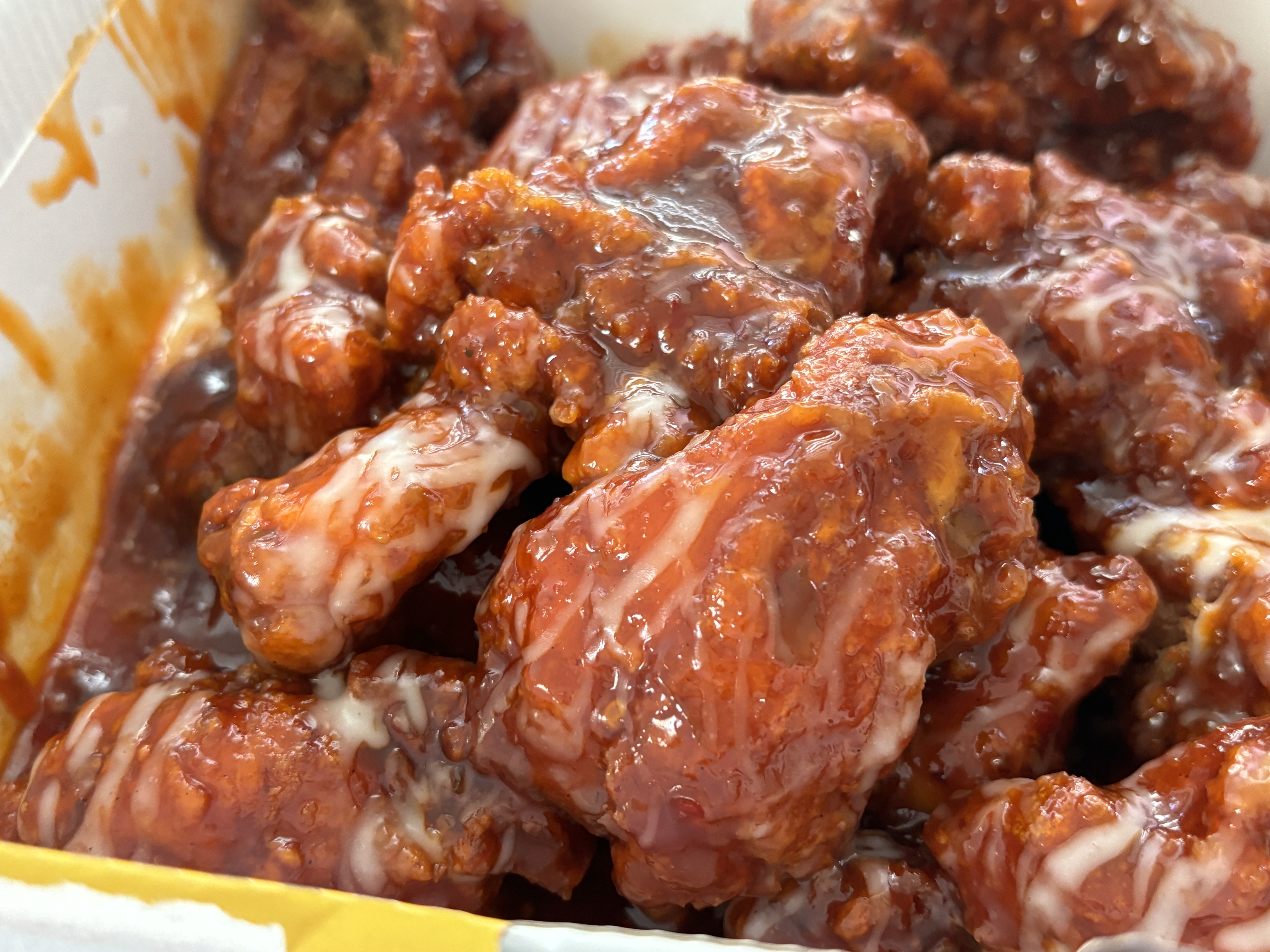 진득한 매운양념소스에 흰색 마요소스로 추정되는 것이 뿌려져있는데 존재감은 미미하다...