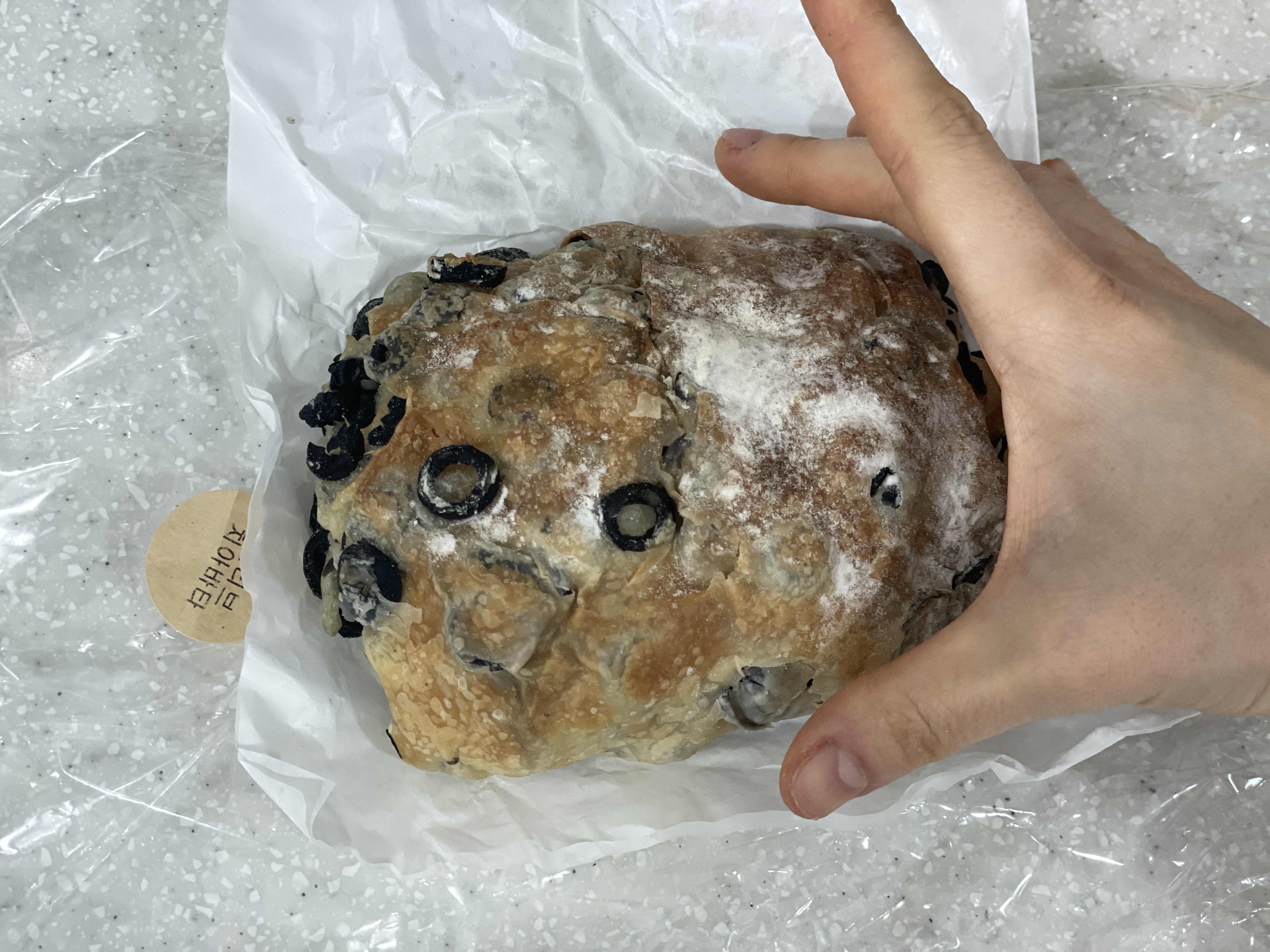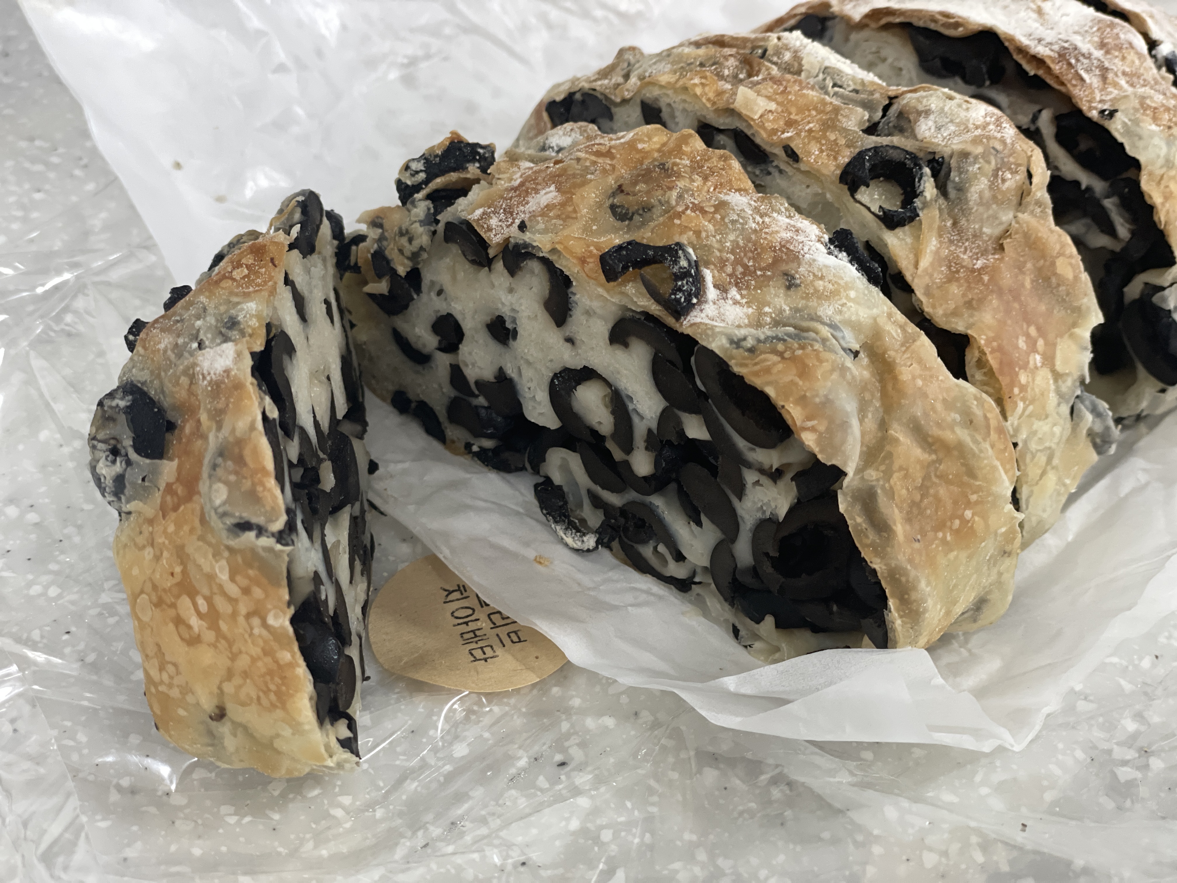 올리브 치아바타는 올리브가 풍부하게 들어가 있어 식사빵으로 좋으나, 올리브의 양이 너무 많아 과하다고 느낄 수도 있을 것 같습니다.