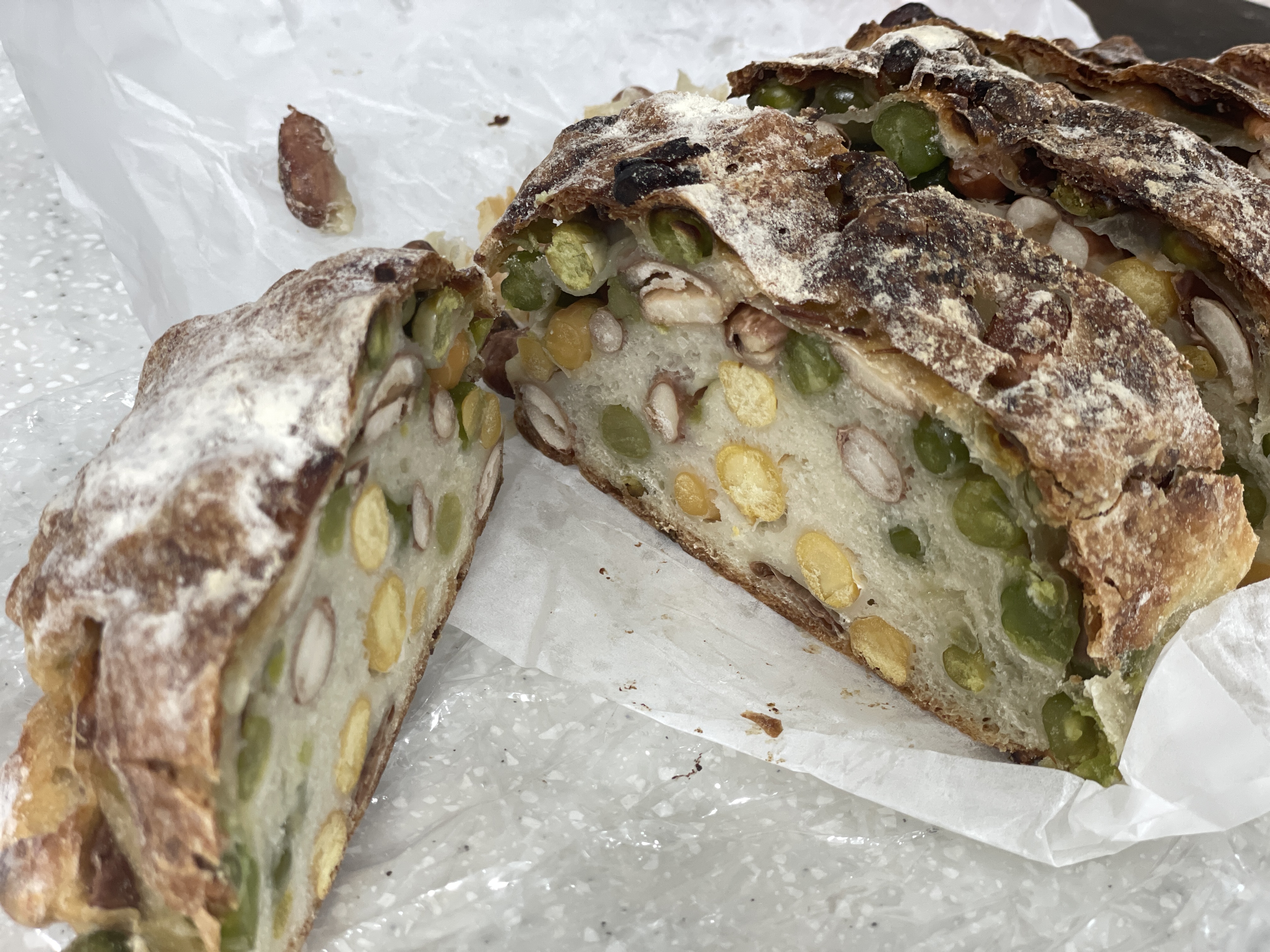 완두 사워도우는 완두의 단맛과 크림치즈가 조화롭게 어우러져 있어, 간식으로 즐기기에 아주 좋았어요.