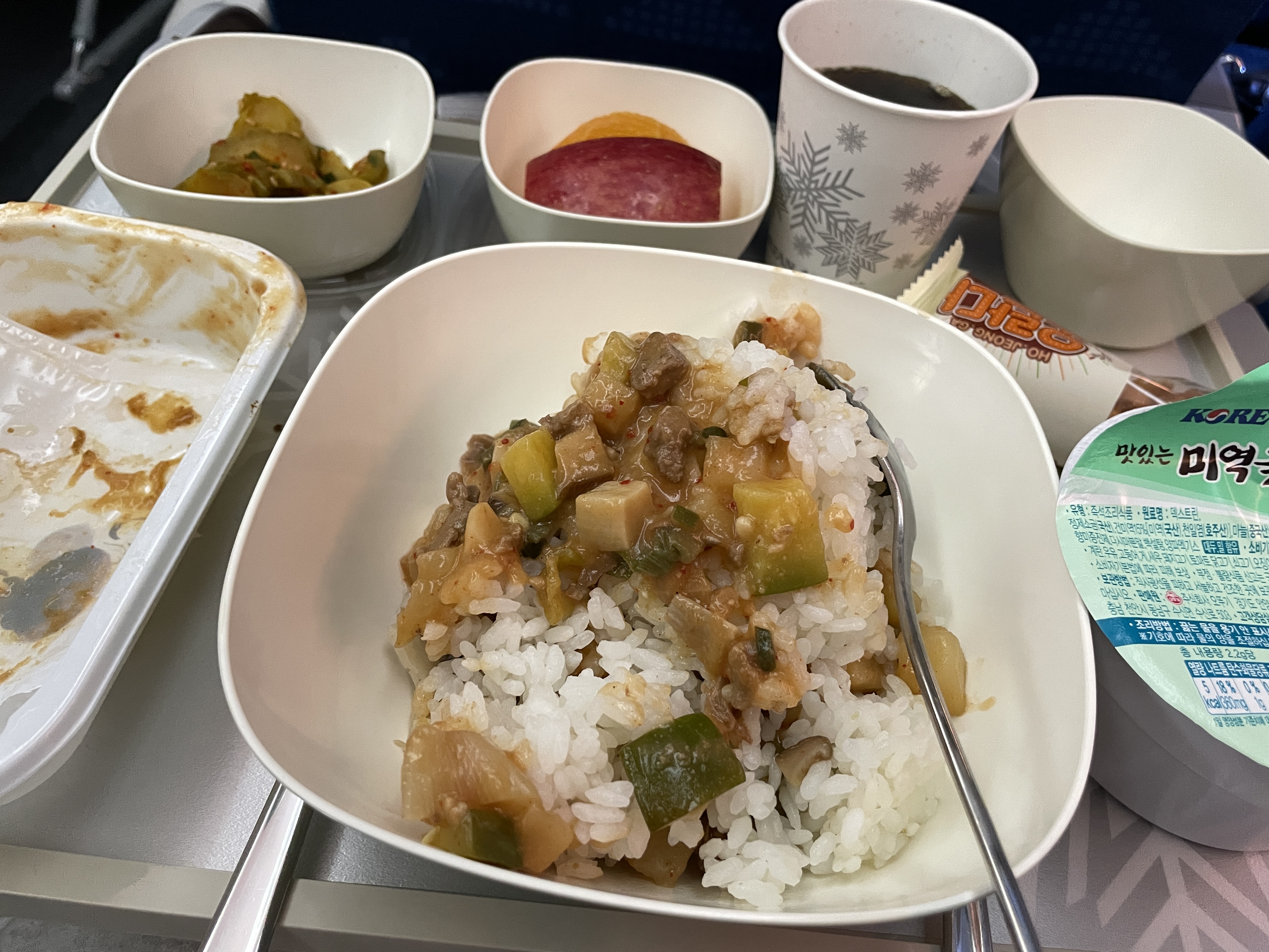 근데 오는 내내 옆줄에 앉은 유럽남자무리가 향수를 너무 독한걸 써서 머리가 지끈지끈했음... 빨리 음식이 나와서 이걸 덮어주길 바랬음